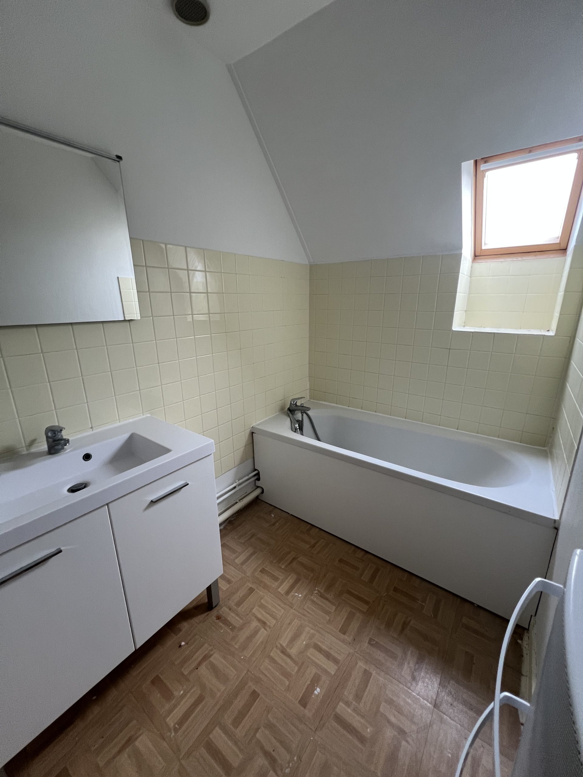 Le logement se compose d’un séjour, d’une cuisine (qui donne l’accès au garage), de trois chambres dont une au rez-de-chaussée, une salle de bain et un WC. Les placards sont intégrés dans les chambres.